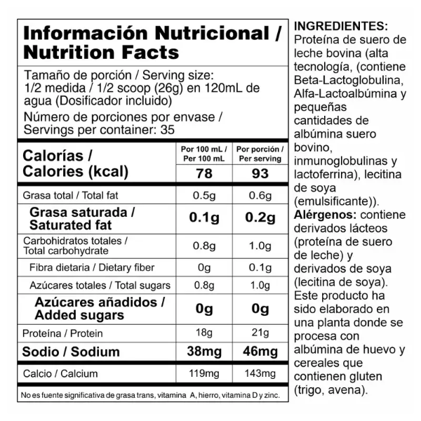 Bipro Classic es una proteína de suero de alta pureza y concentración, con mínimos niveles de grasa y lactosa.