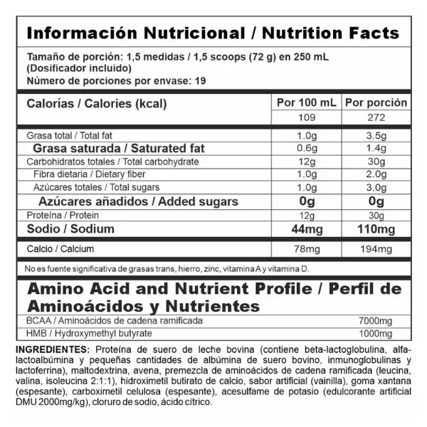 Bi-Pro Mass contiene proteína de suero de leche bovina (Alfa lactoalbúmina, Beta lactoglobulina, Lactoferrina, Albumina del suero), como la única fuente de proteína (no contiene soya ni caseínatos), ideal para ser consumida después de entrenar por su bajo peso molecular. Contiene 1.000 mg HMB, 7.000 mg de Bcaa (Aminoácidos de cadena ramificada) añadidos
