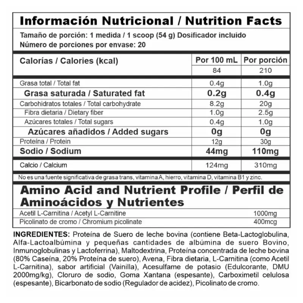 Bipro Ripped es una fórmula nutricional elaborada a base de proteína de suero y caseína, proteínas lácteas con excelentes perfiles nutricionales y diferentes velocidades de absorción, contiene en su fórmula 1.000 mg L-Carnitina y 400 mcg Picolinato de cromo, en las proporciones adecuadas, aporta 30 gramos de proteína por servicio.