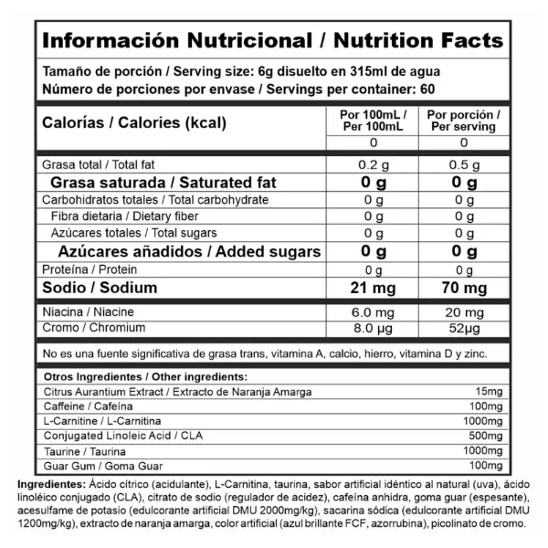 Burner stack contiene 6g por porción de ingredientes, esta así diseñado para tener el 100% de las cantidades recomendadas