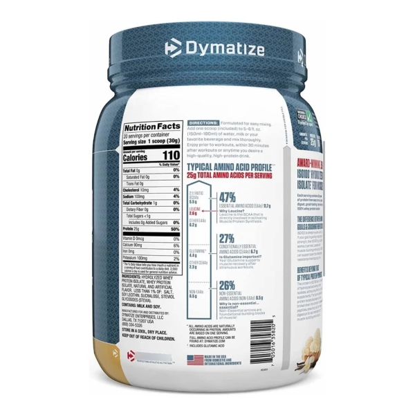 Muchas compañías afirman que usan Aislado de Proteína de Suero, pero después de tomar ISO-100 de Dymatize puedes ver al instante y saborear e incluso sentir la diferencia. Nuestro Aislado de Proteína de Suero ha sido procesado a la perfección, 100% hidrolizado y pasado hasta por 5 controles de calidad. Tanto la Lactosa, como las grasas han sido eliminadas de ISO-100, dejándote sólo con la más fácil digerible y asimilable fuente de proteína en el mercado.