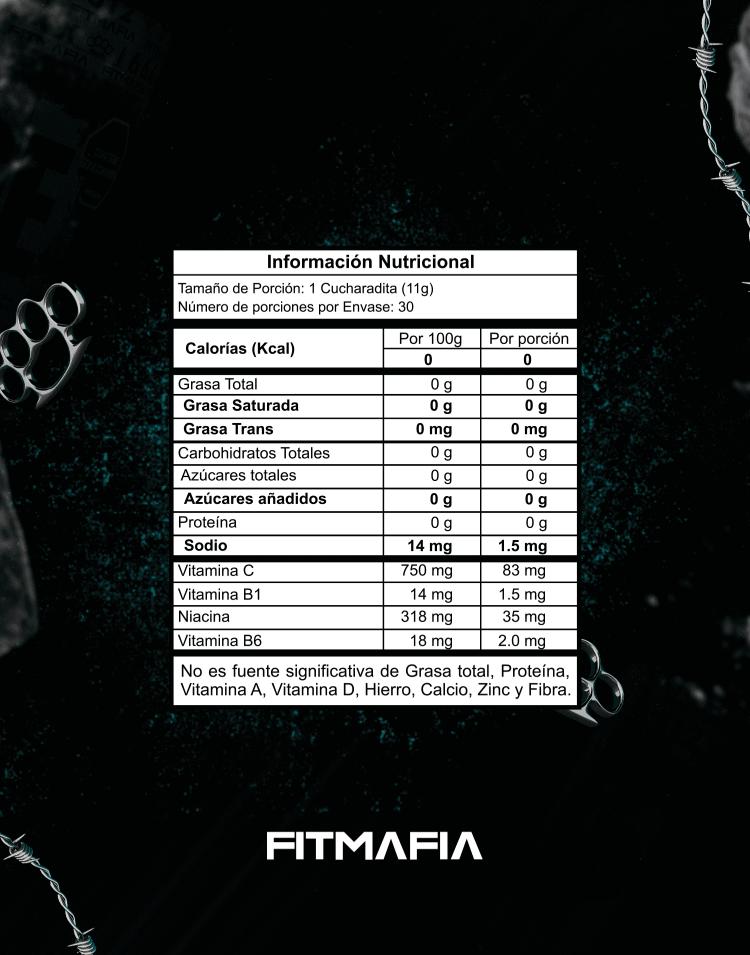ase es una mezcla en polvo para preparar bebida energizante, con un delicioso y refrescante sabor a (Blue Raspberry Ice y Fruit Punch), por sus componentes de cafeína, extracto vegetal de té verde y extracto de naranja amarga, es una combinación que logra mejorar tus niveles de energía y con un plan de entrenamiento adecuado ayudara a obtener tus objetivos en la medida de tu composición corporal.